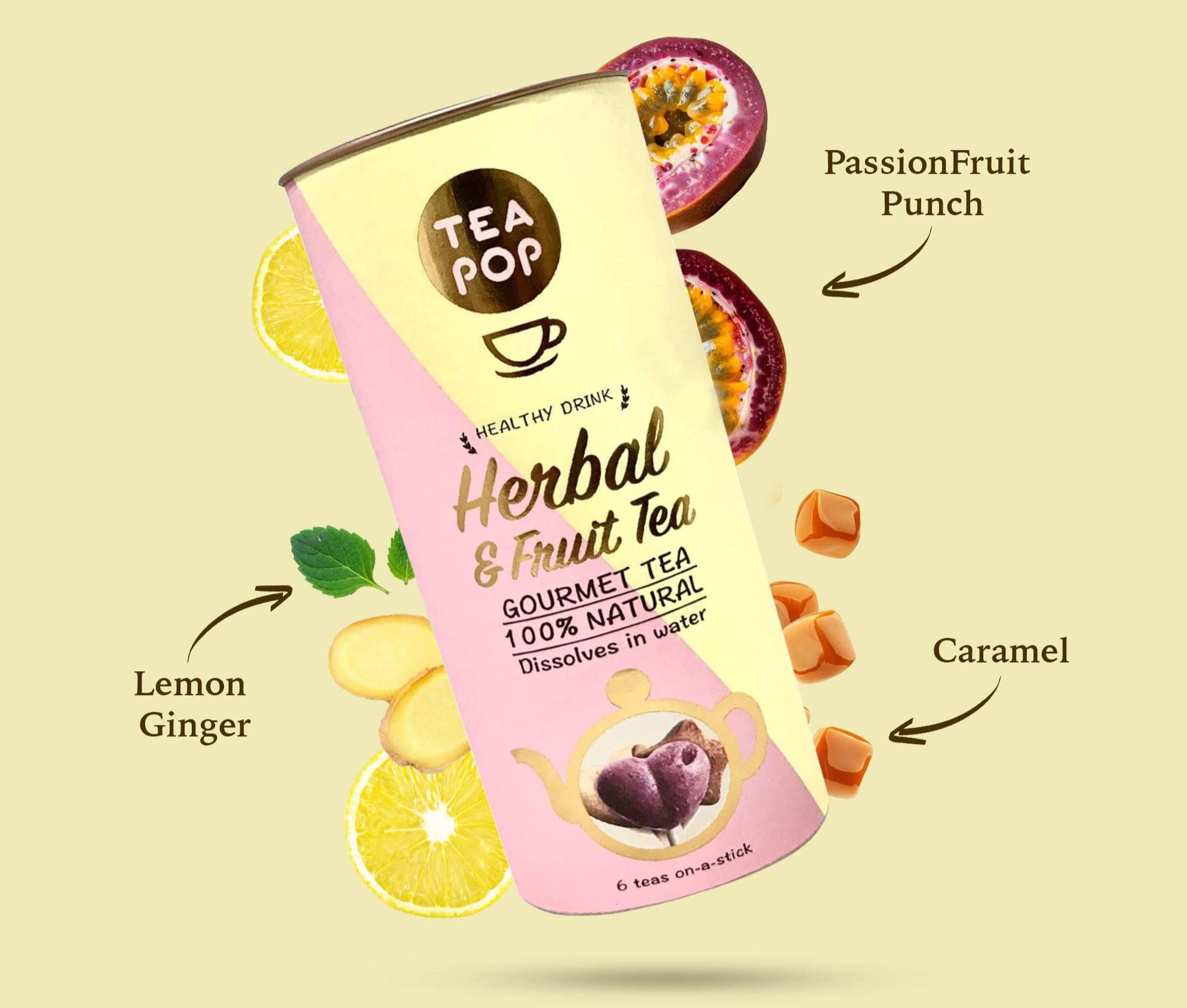 Tea-Pop is crystalised tea made from tea leaves, fruits, plants and herbs.