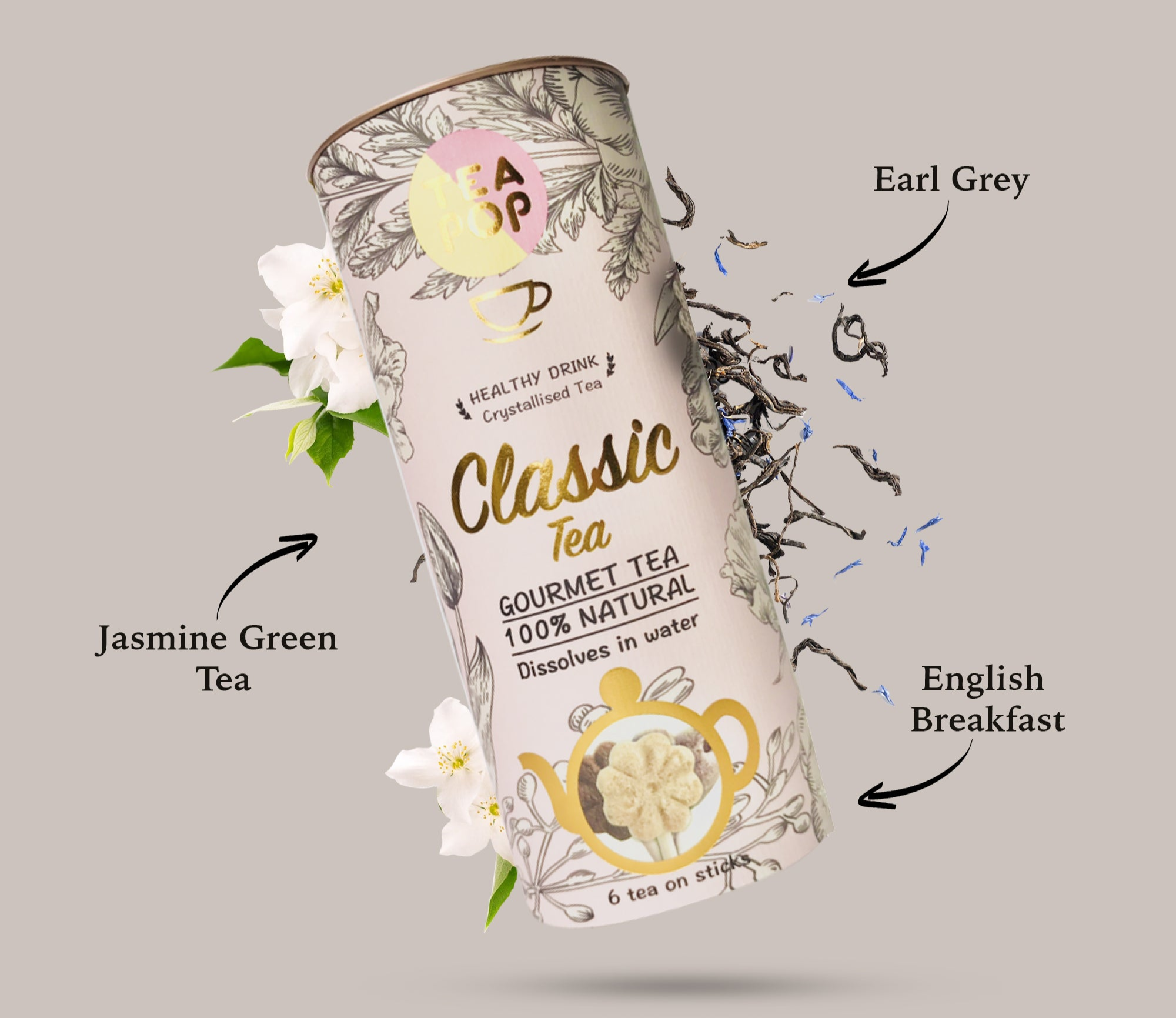 Crystallised Tea-Pop are design to dissolves fully in hot water releasing all the freshness of tea in every cup.